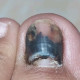 Seorang wanita usia 32th, 3 bln yang lalu jempol kakinya kejatuhan benda berat, terjadi perdarahan di bawah kuku. Tdk dilakukan trepanasi atau tindakan bedah apapun, hanya diberi gel heparin saja. Saat ini datang ke klinik, dg keluhan kuku kakinya masih menghitam, tampak kuku yg menghitam meninggi diatas kuku baru. Saat ini tdk ada keluhan nyeri, dan tdk tampak adanya infeksi. Mohon advice tatalaksana yg perlu dilakukan.