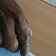 O: lesi makula eritema-hiperpigmentasi dengan ekskoriasi dan hiperkeratosis dan ragged nail a.r digiti II manus dextra
