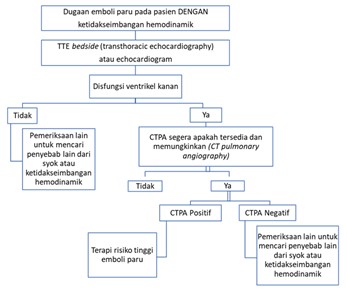 Gambar 1. Algoritma Diagnosis Emboli Paru dengan Kondisi Hemodinamik Tidak Stabil[6]