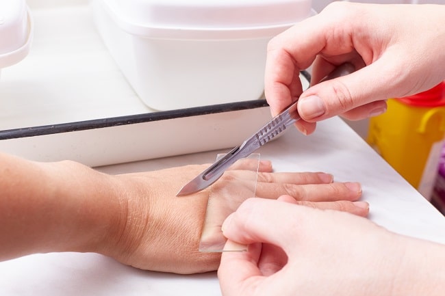 Apusan dan kerokan kulit biasanya dilakukan dengan bisturi tumpul yang dipanaskan terlebih dahulu. Untuk diagnosis infeksi jamur, pemeriksaan ditambah dengan potasium hidroksida (KOH) 10% pada hasil kerokan sebelum diperiksa di bawah mikroskop.[1]