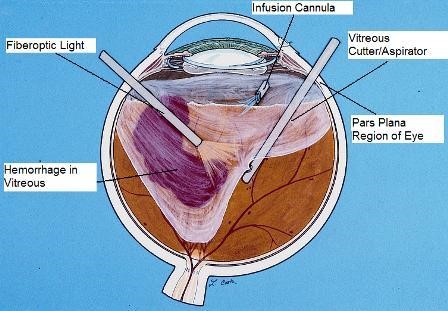 Gambar 1. Gambaran teknik prosedur vitrektomi. Sumber Gambar:Brod, Roy. Surgery for Diseases of the Vitreous and Retina. The Journal of Lancester General Hospital, Spring. 2009