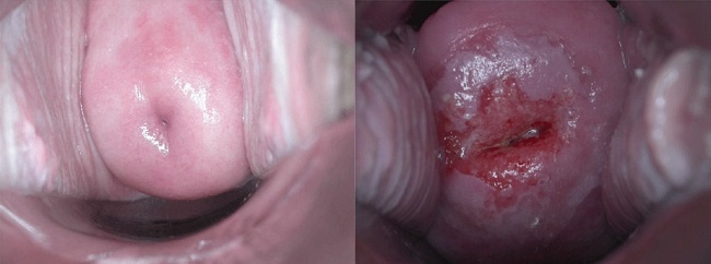 Gambar 1. Perbandingan Cervix Normal (Kiri) dan Cervix yang Mengalami Displasia (Kanan)