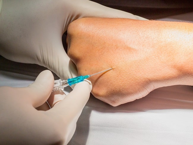 Komplikasi karena kesalahan prosedur pemasangan meliputi tromboflebitis, hematoma, ekstravasasi cairan, cedera serabut saraf dan emboli udara. Sedangkan komplikasi karena pemberian produk secara intravena, meliputi gangguan elektrolit (misalnya hiponatremia atau hipernatremia) dan reaksi anafilaksis.[4–6]